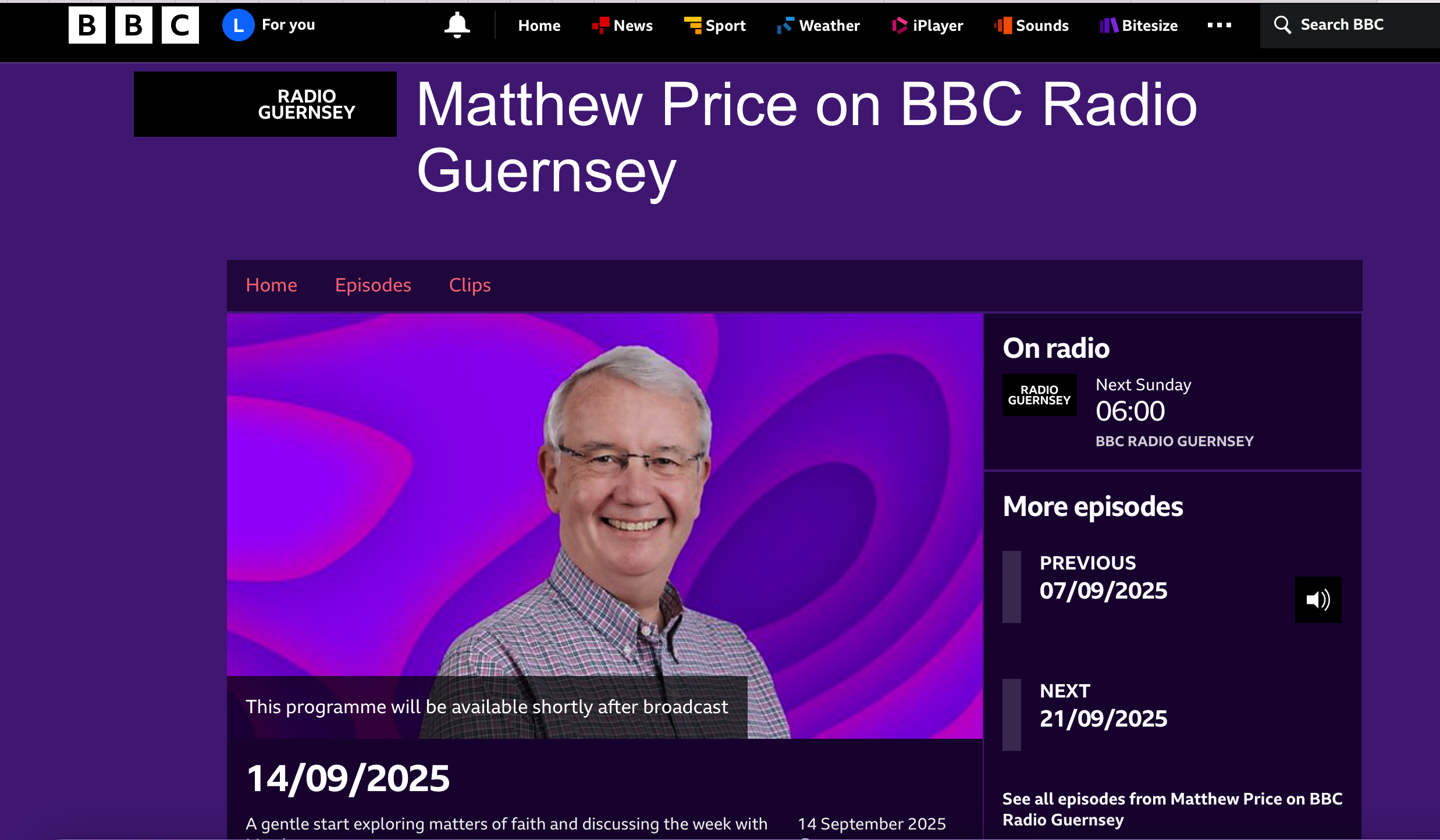 Lovely interview with BBC Guernsey presenter Matthew Price about my music and faith.